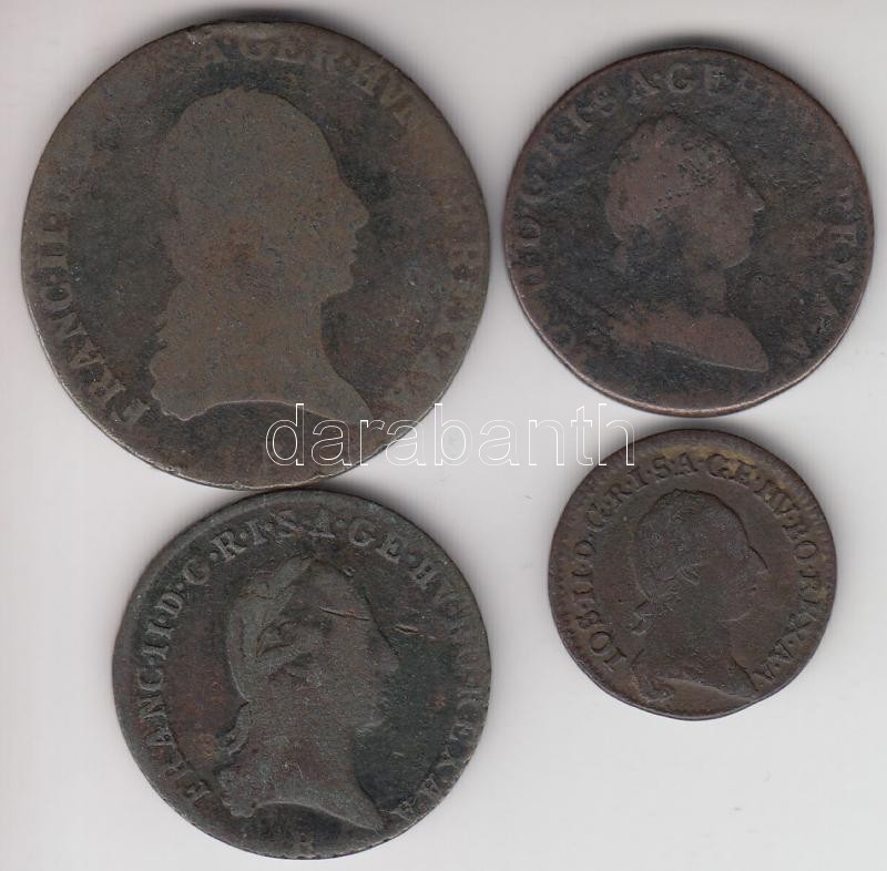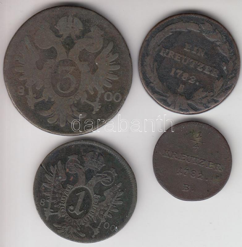 1782B 1Kr + 1782B 1/4Kr + 1800B 1Kr + 3Kr Cu T:3,3- https://www.darabanth.com/de/193-Fernauktion/193.0/Numismatik/Ungarische-Munzen~8/1782B-1Kr-plus-1782B-14Kr-plus-1800B-1Kr-plus-3Kr-Cu-T3-3-~II722611
