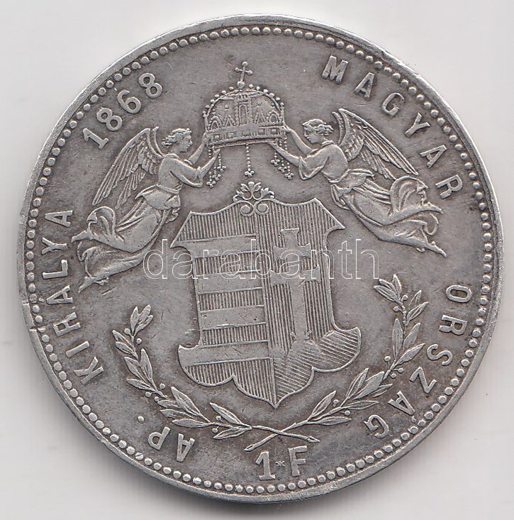 1868GYF 1Ft Ag "Angyalos Címer" T:2/2- https://www.darabanth.com/de/193-Fernauktion/193.0/Numismatik/Ungarische-Munzen~8/1868GYF-1Ft-Ag-Angyalos-Cimer-T22--3Cbr3E~II732760