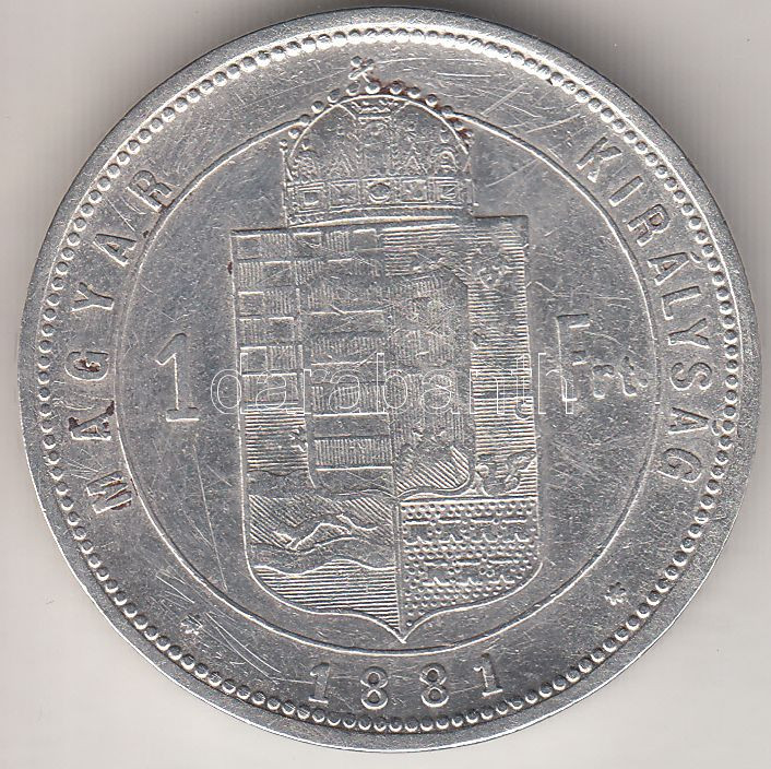 1881KB 1Ft Ag "Középcímer" T:2- https://www.darabanth.com/de/193-Fernauktion/193.0/Numismatik/Ungarische-Munzen~8/1881KB-1Ft-Ag-Kozepcimer-T2-~II689203