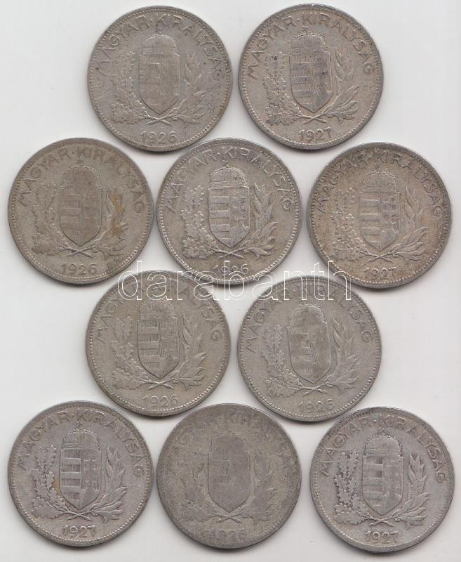 1926-1927. 1P Ag (10x) T:vegyes https://www.darabanth.com/de/193-Fernauktion/193.0/Numismatik/Ungarische-Munzen~8/1926-1927-1P-Ag-10x-Tvegyes~II735092