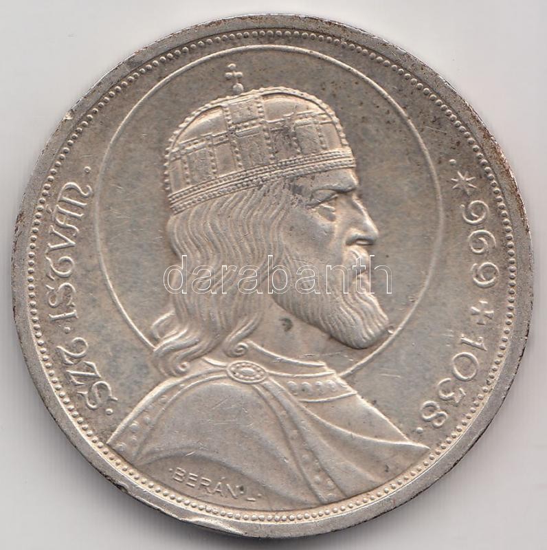 Beschreibung: 1938. 5P Ag "Szent István" T:2