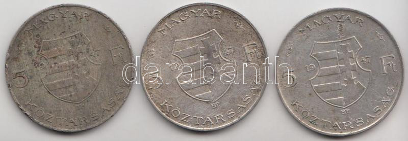 1947. 5Ft Ag "Kossuth" (3x) T:3 https://www.darabanth.com/de/193-Fernauktion/193.0/Numismatik/Ungarische-Munzen~8/1947-5Ft-Ag-Kossuth-3x-T3~II732764