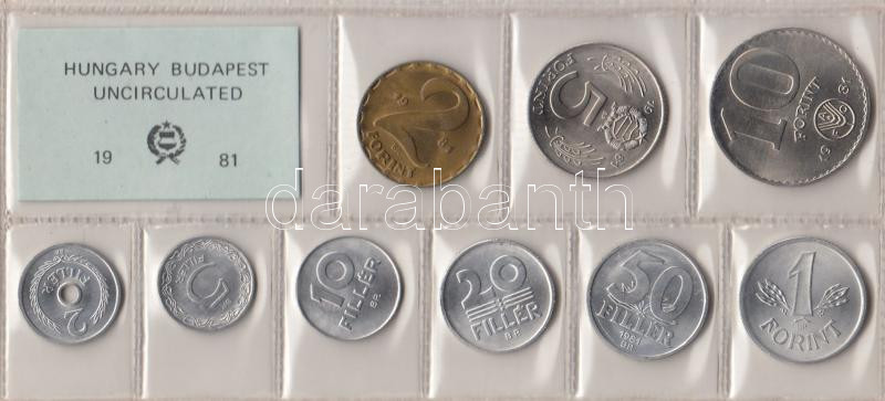 1981. 2f-10Ft 9db klf érmés forgalmi sor fóliatokban T:1 https://www.darabanth.com/de/193-Fernauktion/193.0/Numismatik/Ungarische-Munzen~8/1981-2f-10Ft-9db-klf-ermes-forgalmi-sor-foliatokban-T1~II732825