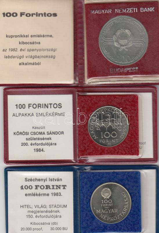 Beschreibung: 1982. 100Ft "Labdarúgó VB" + 1983. 100Ft "Széchenyi István" + 1984. 100Ft "Kőrösi Csoma Sándor" T:BU Eredeti tokban, tanúsítvánnyal!