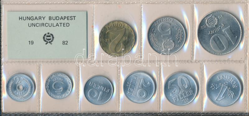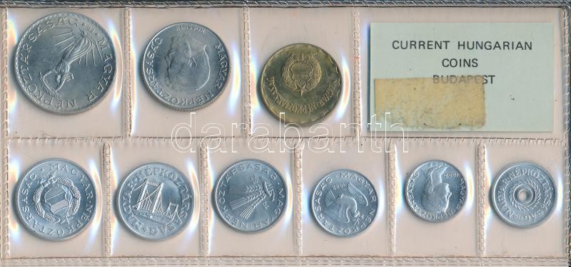 1982. 2f-10Ft 9db klf érmés forgalmi sor fóliatokban T:1 https://www.darabanth.com/de/193-Fernauktion/193.0/Numismatik/Ungarische-Munzen~8/1982-2f-10Ft-9db-klf-ermes-forgalmi-sor-foliatokban-T1~II732824