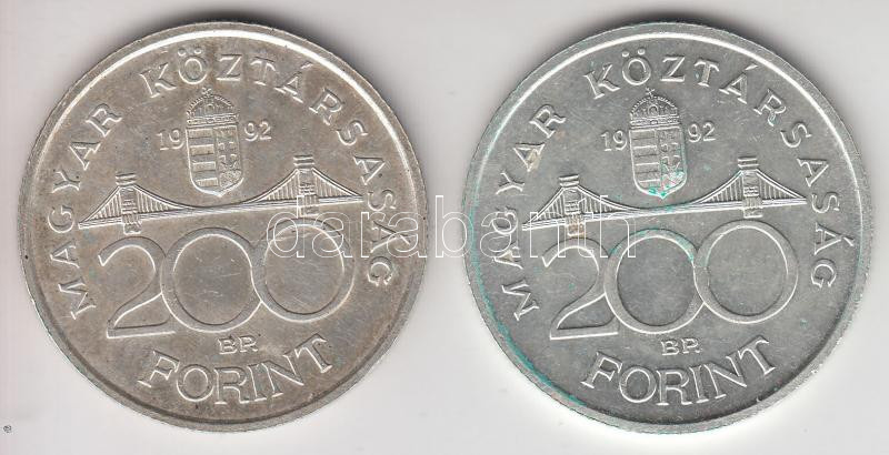 1992. 200Ft Ag "MNB" (2x) T:2 https://www.darabanth.com/de/193-Fernauktion/193.0/Numismatik/Ungarische-Munzen~8/1992-200Ft-Ag-MNB-2x-T2~II732230