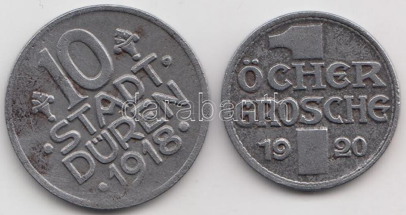Német Birodalom / Düren 1918. 10Pf + Aachen 1920. 1 Öcher Grosche váro... https://www.darabanth.com/de/193-Fernauktion/193.0/Numismatik/Ungarische-und-Auslandische-Notgelden~6/Nemet-Birodalom-Duren-1918-10Pf-plus-Aachen-1920-1-Ocher-Grosche-varosi-szuksegpenz-T2-2--3C~II732871