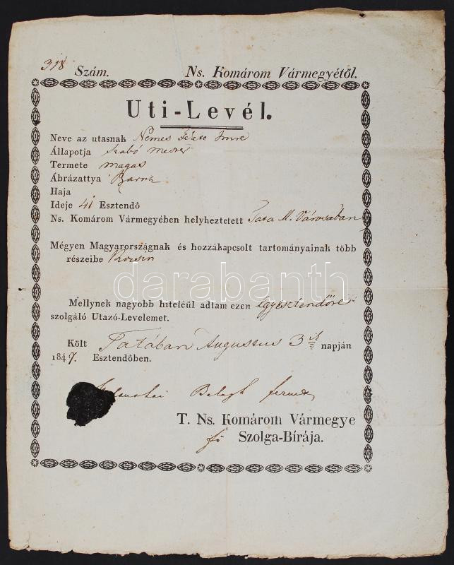 1847 Útlevél Tata-Rozsin / Passport https://www.darabanth.com/de/194-Fernauktion/194.0/Andere-Sammelgebiete/Dokument~600022/1847-Utlevel-Tata-Rozsin-Passport~II742896
