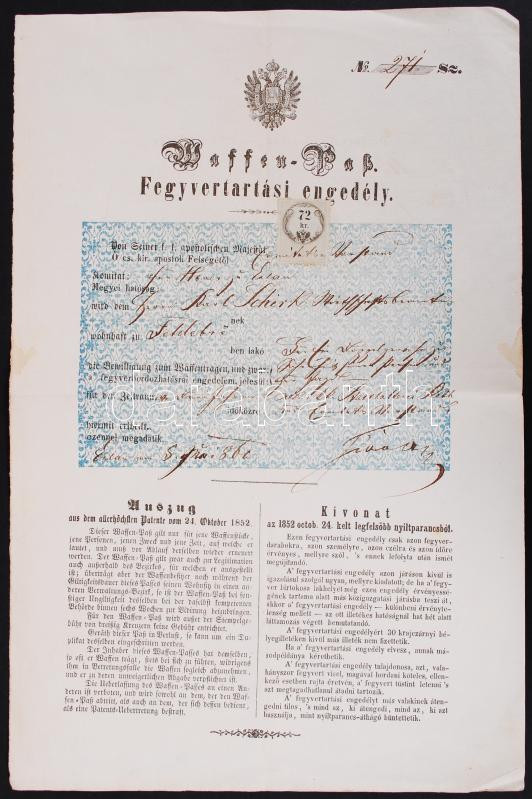 1860 Firearms licence from Budapest