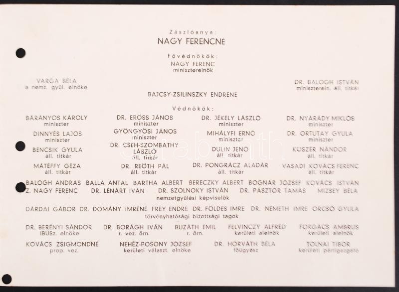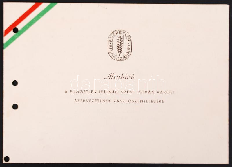 Beschreibung: 1947 Független Kisgazdapárt, Független Ifjúság Szent István városi szervezetének zászlószentelésére meghívója