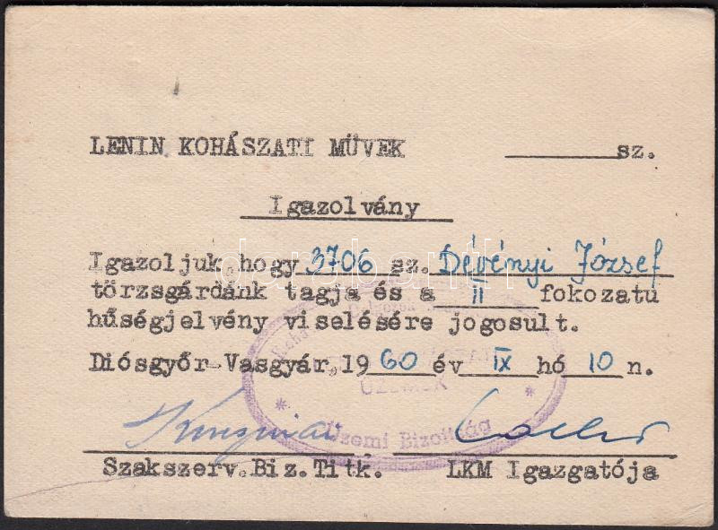 1960 Lenin Kohászati Művek igazolvány https://www.darabanth.com/de/194-Fernauktion/194.0/Andere-Sammelgebiete/Dokument~600022/1960-Lenin-Kohaszati-Muvek-igazolvany~II743323
