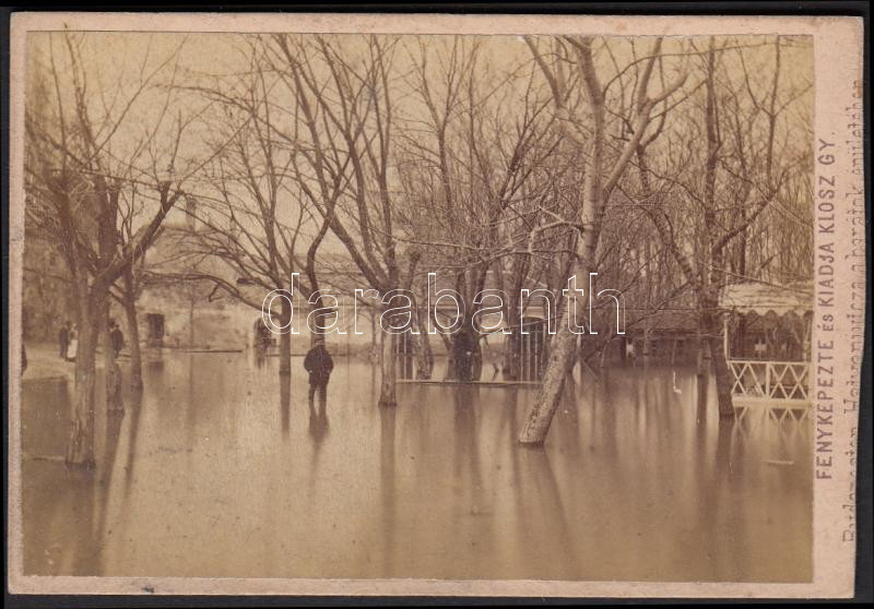 Beschreibung: 1876 Árvíz Budapesten Újtelep Lukácsfürdő Klösz György fotója 10x7 cm