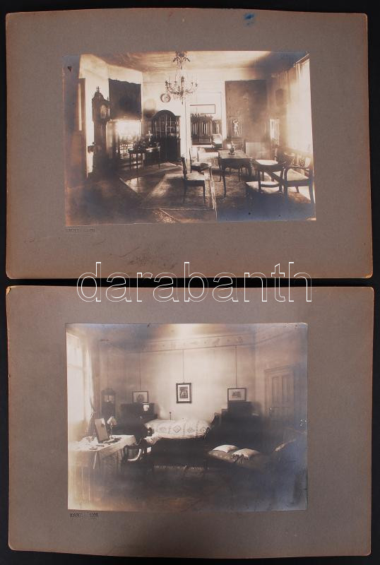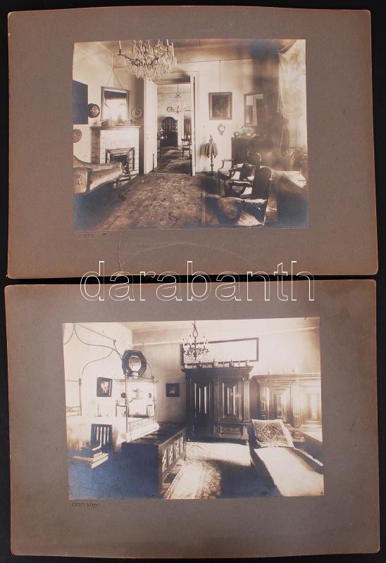 Beschreibung: 1900-1920 Kiszer Nándor 7 db vintage felvétele egy kúria berendezéséről; pecséttel jelzett, képméret: 16x21 cm; karton: 24x33 cm