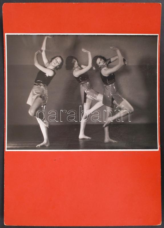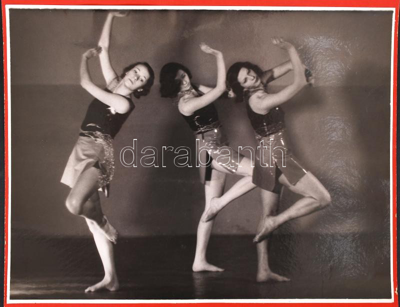1932 Foto Ada (Marsowszky Elemérné): Harmónia; vintage fotóművészeti alkotás a Szentpál Olga mozgásművészeti iskola növendékéről, a szereplők neve a hátoldalon; képméret 17x23 cm; karton méret 34x24 cm