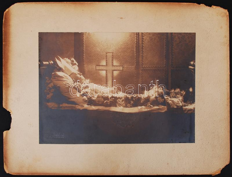1945 Hollenzer jelzéssel: Serédi Jusztinián (????) esztergomi érsek a ravatalozón; képméret 16x22 cm, karton 25x33 cm, a karton sérült; hidegpecséttel jelzett