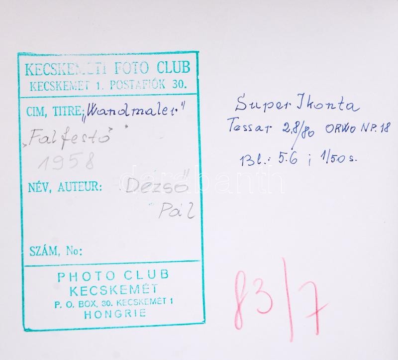 1958 Dezső Pál: Falfestő. Vintage fotó, hátoldalán pecséttel jelzett, ... https://www.darabanth.com/de/194-Fernauktion/194.0/Andere-Sammelgebiete/Foto~600028/1958-Dezso-Pal-Falfesto-Vintage-foto-hatoldalan-pecsettel-jelzett-feliratozott-23x17cm~II741243