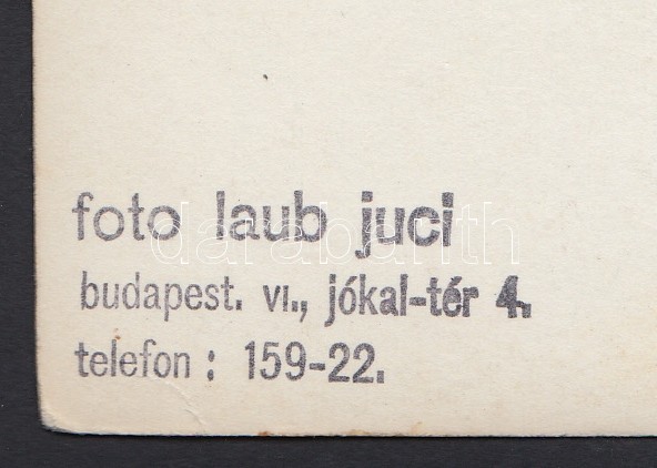 Cca 1940 Laub Juci: Műtermi vintage fotó, pecséttel jelzett 24x17 cm https://www.darabanth.com/de/194-Fernauktion/194.0/Andere-Sammelgebiete/Foto~600028/Cca-1940-Laub-Juci-Mutermi-vintage-foto-pecsettel-jelzett-24x17-cm~II743168