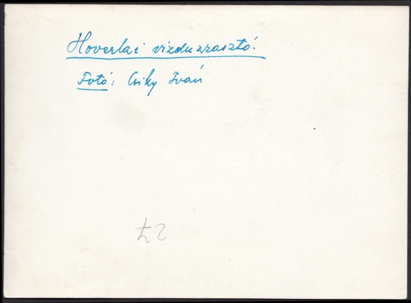 Beschreibung: cca 1940 Csiky Iván: Hoverlai vízduzzasztó. Vintage fotó, hátoldalán jelzett, feliratozott, 12x17cm