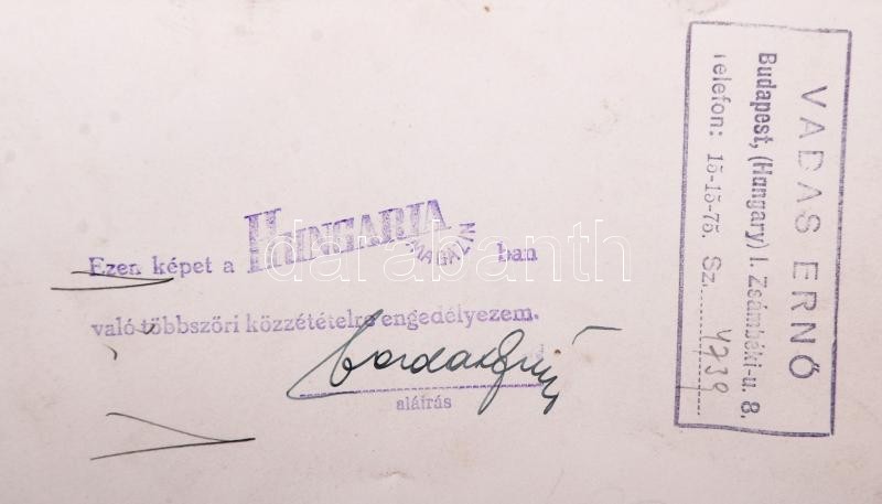 cca 1940 Vadas Ernő (1899-1962) vintage budapesti fotója, hátoldalán szerzői pecséttel jelzett, aláírt, 23x13cm (a képen golyóstollnyomok és egy apró sérülés, két sarka törött)