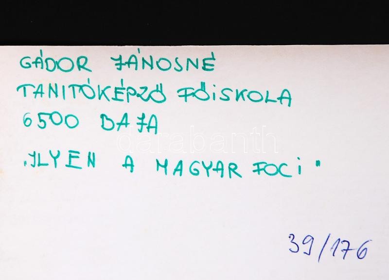 cca 1970-1980 Gádor Jánosné: Ilyen a magyar foci. Vintage fotó, hátold... https://www.darabanth.com/de/194-Fernauktion/194.0/Andere-Sammelgebiete/Foto~600028/cca-1970-1980-Gador-Janosne-Ilyen-a-magyar-foci-Vintage-foto-hatoldalan-feliratozott-16x23~II741247