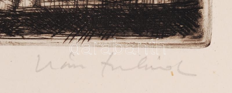 Beschreibung: Iván Szilárd (1912-1988): Reggel. Rézkarc, papír, jelzett, 13×20 cm