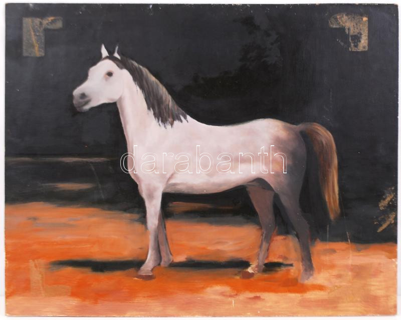 Jelzés nélkül: Fehér ló. Olaj, farost, 40×50 cm https://www.darabanth.com/de/194-Fernauktion/194.0/Andere-Sammelgebiete/Gemalde-und-Grafiken~600001/Jelzes-nelkul-Feher-lo-Olaj-farost-40C39750-cm~II738057