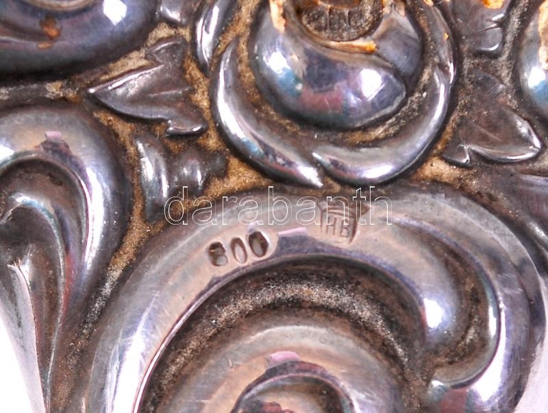 Beschreibung: cca 1900 Növényi díszítésű, poncolt, ezüst (Ag) kézi tükör 800-as tisztaságú jelzéssel, osztrák-magyar behozatali jeggyel /