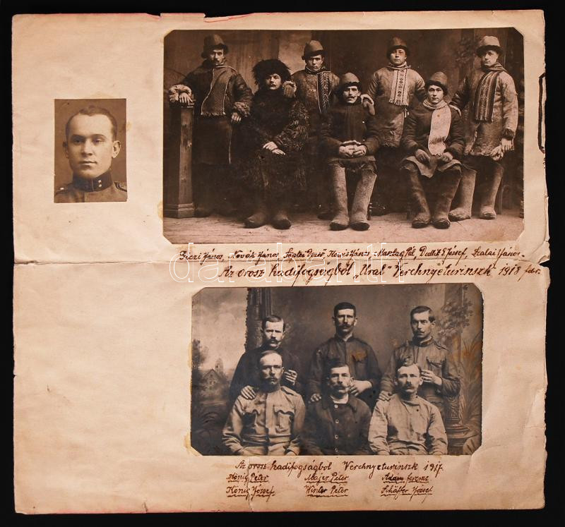 Beschreibung: 1917-1918 3db fotó az orosz hadifogságból, papírra ragasztva, feliratozva, datálva /
