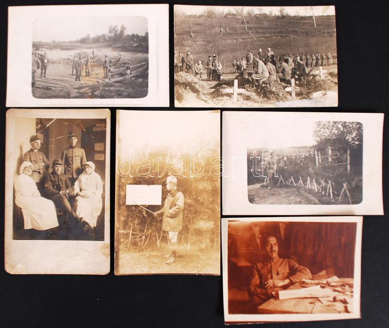 Beschreibung: Cca 1917 6 db katonai fotók, hátán feliratozva, néhány viseltes állapotban, 9×12 cm