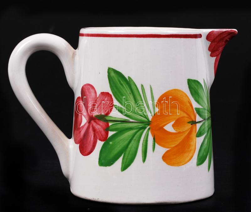 Beschreibung: Francia Sarreguemines fajansz kiöntő, kézzel festett, jelzett, hibátlan, m:9 cm