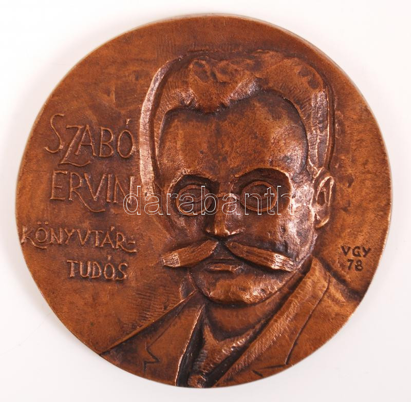 Várhelyi György (1942-): Szabó Ervin. Bronz plakett, jelzett, d:11 cm https://www.darabanth.com/de/194-Fernauktion/194.0/Andere-Sammelgebiete/Skulpturen-Statuetten-Plaketten~600004/Varhelyi-Gyorgy-1942-Szabo-Ervin-Bronz-plakett-jelzett-d11-cm~II740353