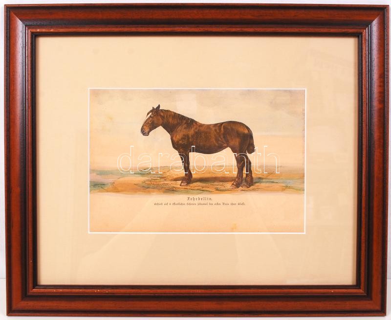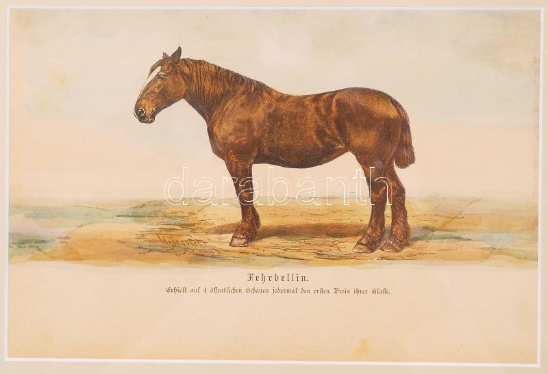 Beschreibung: 1879 Futamgyőztes lovak sorozat: kőnyomat igényes üvegezett keretben / Champion horses kőnyomat 40x33 cm