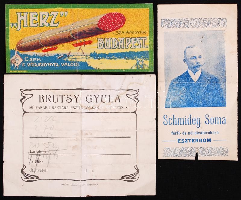 Cca 1930 3 db számoló cédula benne Hertz litho + 1896-1950 12 db-os reklám tétel, Pesti Hírlap jegyzéke stb + Cca 1890 5 db névjegykártya, egyik Esztergom megye főorvosáé, egyházi méltóságok, + Gróf Csáky Károly (1873-1945), lovassági tábornok névjegykártyája és aláírása