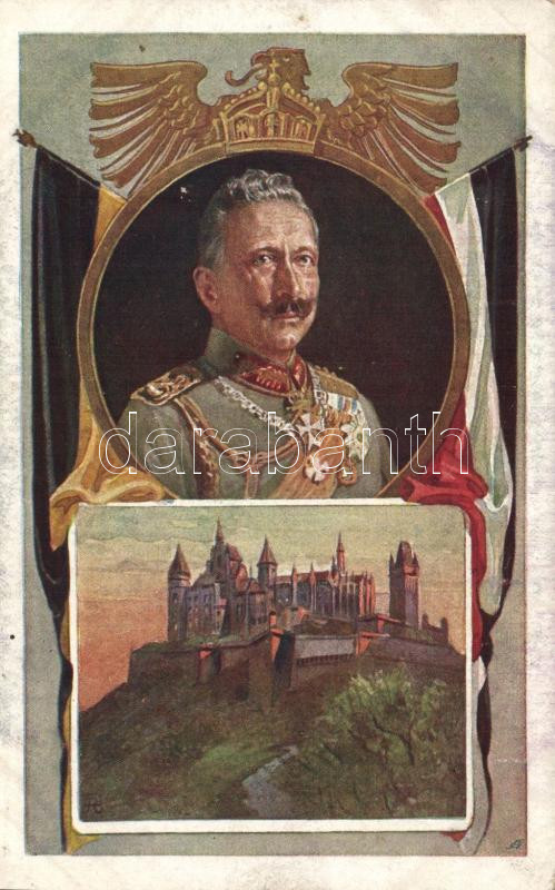 Wilhelm II, Hohenzollern Castle, flag, Deutscher Schulverein Karte