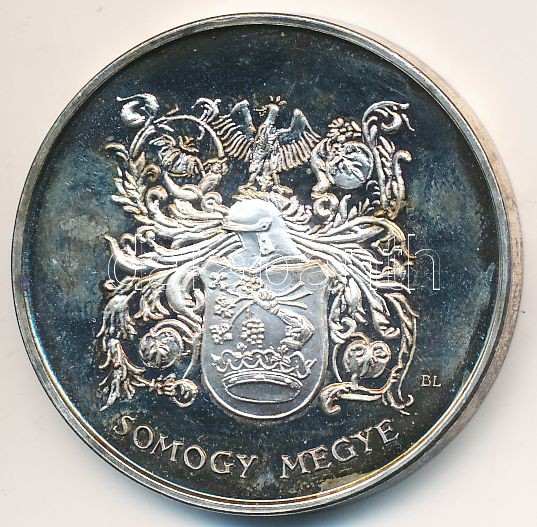Beschreibung: DN. "Somogy Megye Közgyűlése / Címer" ezüstözött fém emlékérem dísztokban. Szign.: BL (42mm) T:PP