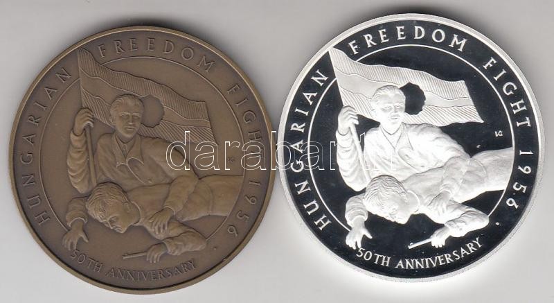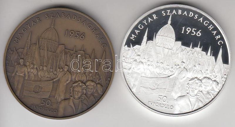 Kósa István (1953-) 1989. "Magyar Szabadságharc 1956 50. Évforduló / Hungarian Freedom Fight 1956" Ag emlékérem (31.17g/0.999/42.5mm) és Br emlékérem (42.5mm) T:PP,1 Csak 1000db!