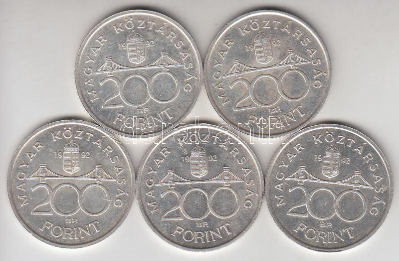 1992. 200Ft Ag "MNB" (5x) T:2 https://www.darabanth.com/de/194-Fernauktion/194.0/Numismatik/Ungarische-Munzen~200007/1992-200Ft-Ag-MNB-5x-T2~II737889