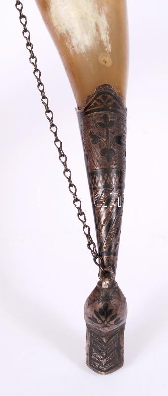 Beschreibung: cca 1850 Kaukázusi szaru ivókürt,niello díszítésű ezüst (Ag) kiegészítőkkel 25 cm /