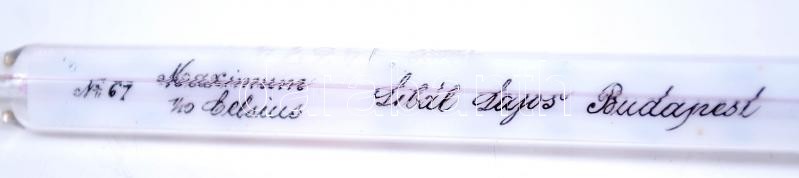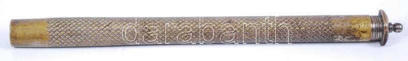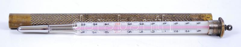 Beschreibung: cca 1930 Higanyos hőmérő cizellált réz tokban, (Libál János munkája, Budapest), 13 cm