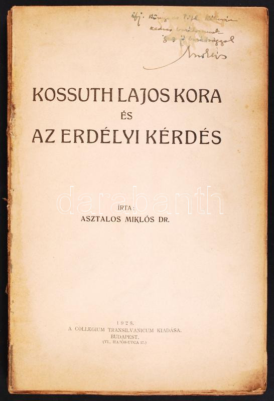 Kossuth Lajos kora és az erdélyi kérdés. Dedikált! Bp., 1928 Collegium... https://www.darabanth.com/de/195-Fernauktion/195.0/Andere-Sammelgebiete/Bucher-Geschichte~800028/Kossuth-Lajos-kora-es-az-erdelyi-kerdes-Dedikalt-Bp-1928-Collegium-Transilvanicum-kotes-~II747106
