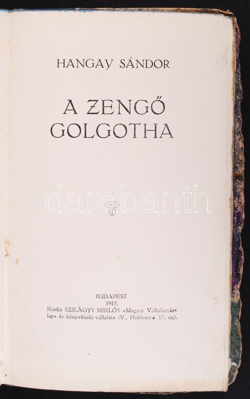 Hangay Sándor: A zengő Golgotha. Bp., 1915. magyar vállalkozás. A szer... https://www.darabanth.com/de/195-Fernauktion/195.0/Andere-Sammelgebiete/Bucher-Sonstige-Raritaten~800039/Hangay-Sandor-A-zengo-Golgotha-Bp-1915-magyar-vallalkozas-A-szerzo-arckepevel-152p-M~II745171