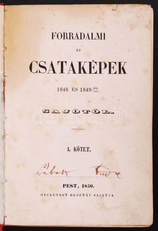 Sajó (Jókai Mór): Forradalmi és csataképek 1848 és 1849-ből. I-II. kötet egybe kötve. Bp. 1850. Landerer és Heckenast, első kiadás. Újrakötve, kopottas.