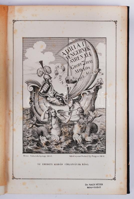 Zrínyi Milkós: Adriai tengernek Syrenaia. Címlap nélküli. Újrakötött. ... https://www.darabanth.com/de/195-Fernauktion/195.0/Andere-Sammelgebiete/Bucher-Sonstige-Raritaten~800039/Zrinyi-Milkos-Adriai-tengernek-Syrenaia-Cimlap-nelkuli-Ujrakotott-Kopottas-Korol-nyo~II748195