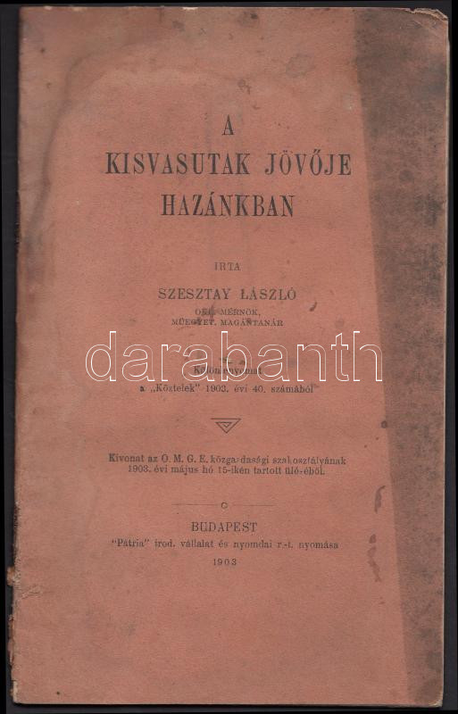 Szesztay László: A kisvasútak jövője hazánkban. Bp., 1903. Pátria. 36p... https://www.darabanth.com/de/195-Fernauktion/195.0/Andere-Sammelgebiete/Bucher-Wissenschaft-und-Technik~800027/Szesztay-Laszlo-A-kisvasutak-jovoje-hazankban-Bp-1903-Patria-36p-borito-es-a-hatsC3~II747101