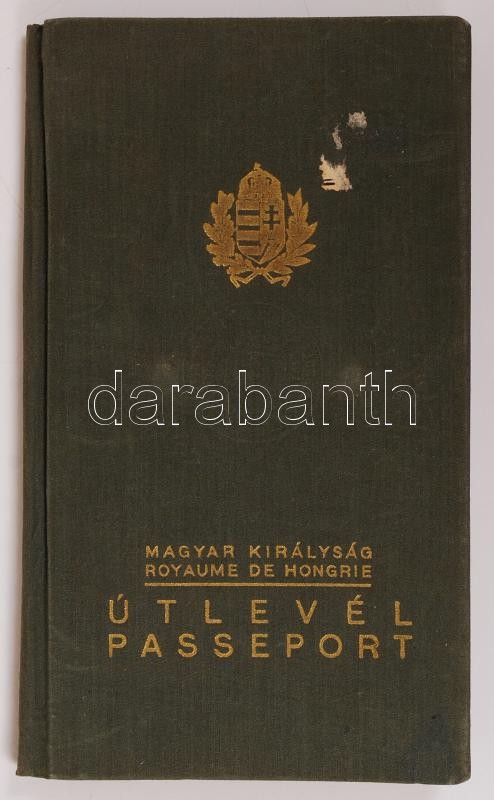 1939, Útlevél, vízumpecsétekkel és bejegyzésekkel, https://www.darabanth.com/de/195-Fernauktion/195.0/Andere-Sammelgebiete/Dokument~800014/1939-Utlevel-vizumpecsetekkel-es-bejegyzesekkel-~II750671