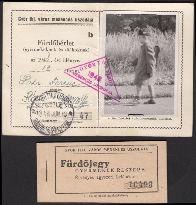 1948. Fürdőbérlet gyermekeknek, fotóval, pecséttel. Fürdőjegy gyermeke... https://www.darabanth.com/de/195-Fernauktion/195.0/Andere-Sammelgebiete/Dokument~800014/1948-Furdoberlet-gyermekeknek-fotoval-pecsettel-Furdojegy-gyermekeknek-10-db-os-gyujto~II748017
