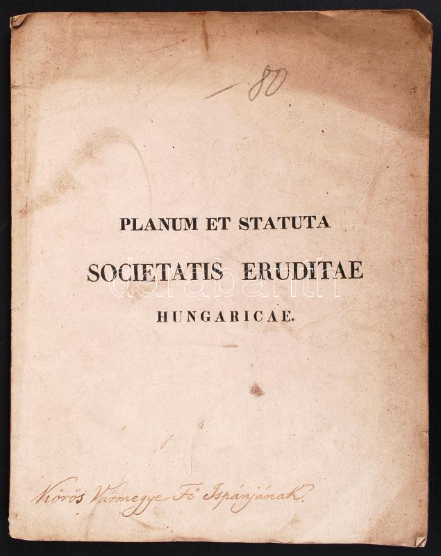 1831 Planum et statuta societatis eruditae Hungaricae. Prstini, 1831, ... https://www.darabanth.com/de/195-Fernauktion/195.0/Andere-Sammelgebiete/Drucksachen~800026/1831-Planum-et-statuta-societatis-eruditae-Hungaricae-Prstini-1831-typ-Joh-M-Trattner-de-PetrC3~II745240