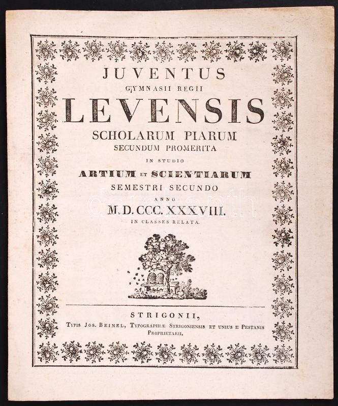 Beschreibung: 1838 Juventus gymnasii regii Levensis Scholarum Piarum secundum promerita in studio artium et scientiarum semestri secundo... Strigonii, typ. Jos. Beimel
