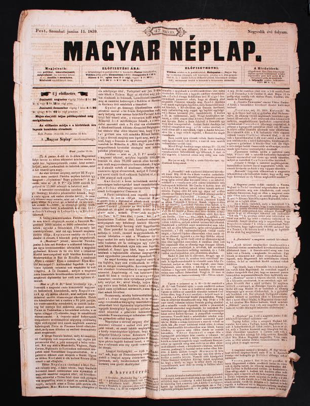 Beschreibung: 1859 A Magyar Néplap június 11.-i száma