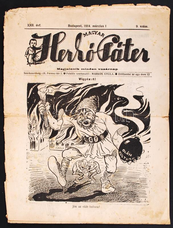1914 Magyar Herkó Páter. XXII/9. szám https://www.darabanth.com/de/195-Fernauktion/195.0/Andere-Sammelgebiete/Drucksachen~800026/1914-Magyar-Herko-Pater-XXII9-szam~II745033